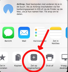 U komt dan in een menu terecht met tal van keuzes. Ieder 'merk' telefoon doet dat op zijn eigen manier. Maar er zal altijd wel ergens iets staan van 'Zet op beginscherm', 'Add to Home screen'